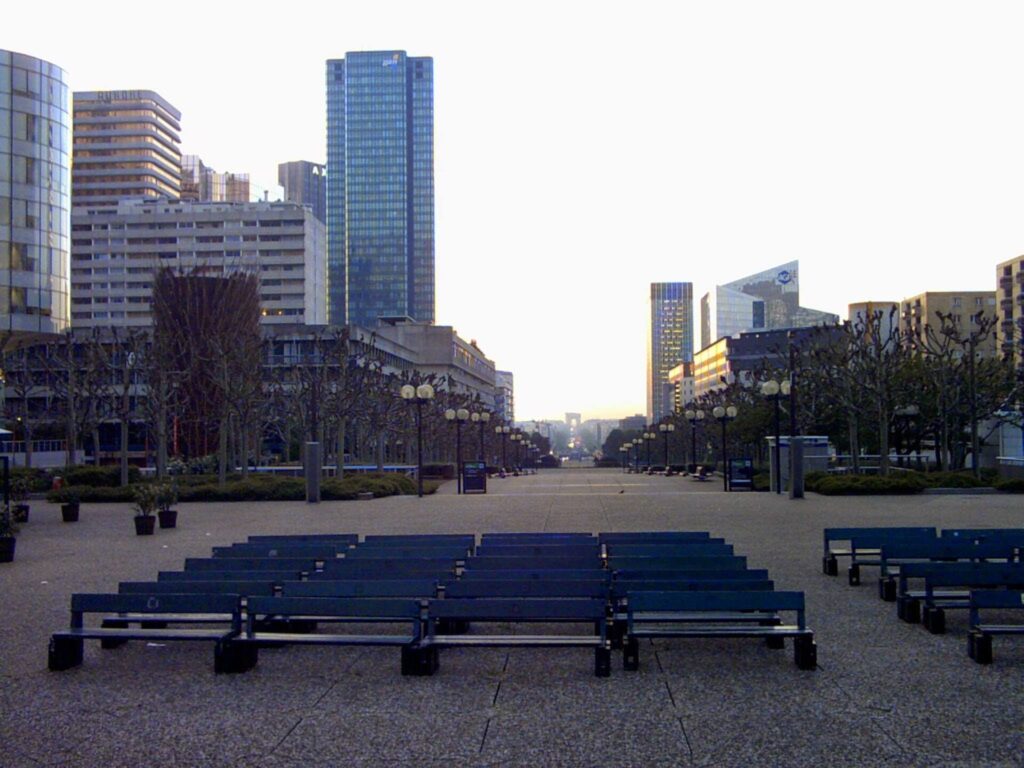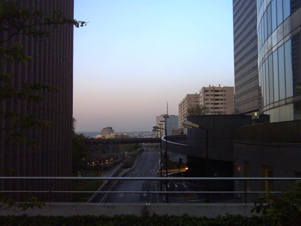 Quelques fois en avance par rapport à mes horaires de train, je faisais un petit tour avant ou après la tournée dans ce quartier de la Défense. L’architecture m’intriguait. Voici quelques photos prises avec mon appareil photo digital de l’époque, une résolution de 1 megapixel propulsée par 4 piles LR6, acheté en promo au magasin Surcouf de Paris.
